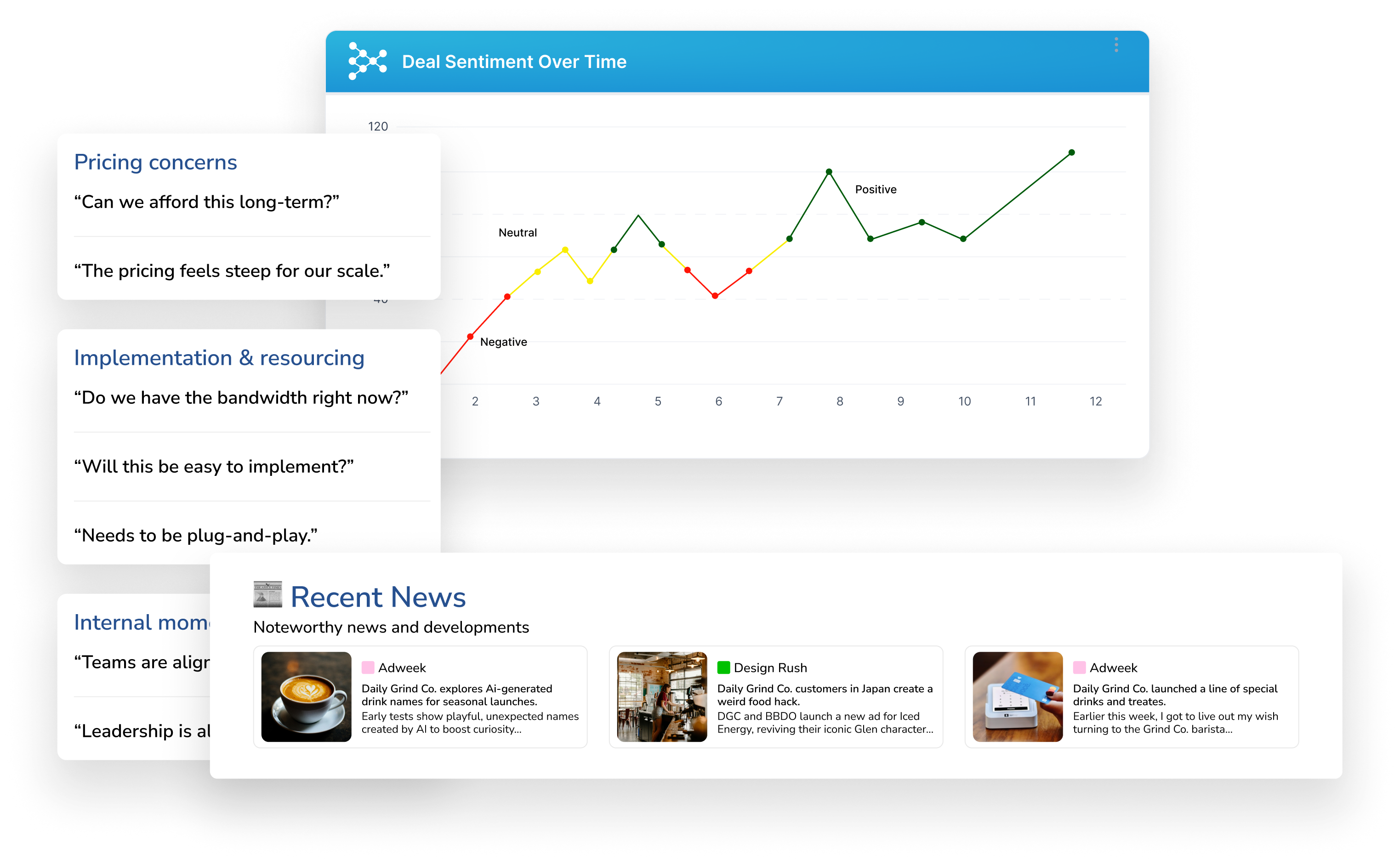 Customer sentiment tracking over time to gauge deal health and momentum